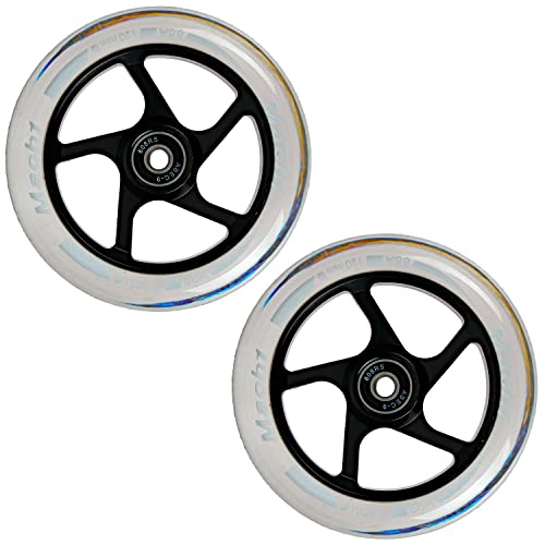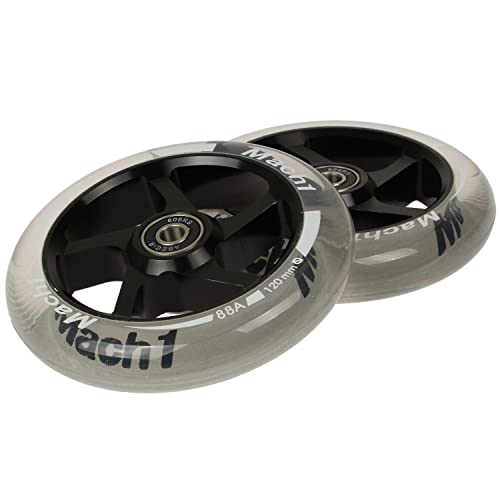 Mach1 Le ruote professionali per scooter stunt convincono grazie alle caratteristiche di guida ottimali e ai cuscinetti a sfera ABEC-9. Il peso per rotolo è di 274 g