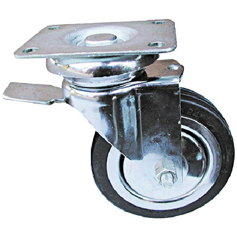 IN GOMMA NERA, CON PARAFILI E FLANGE IN ACCIAIO STAMPATO, ROTANTE SU CUSCINETTI A SFERA. PIASTRA GIREVOLE E FRENO. ESECUZIONE: CROMATA.ø 100 PIASTRA MM 90X70
