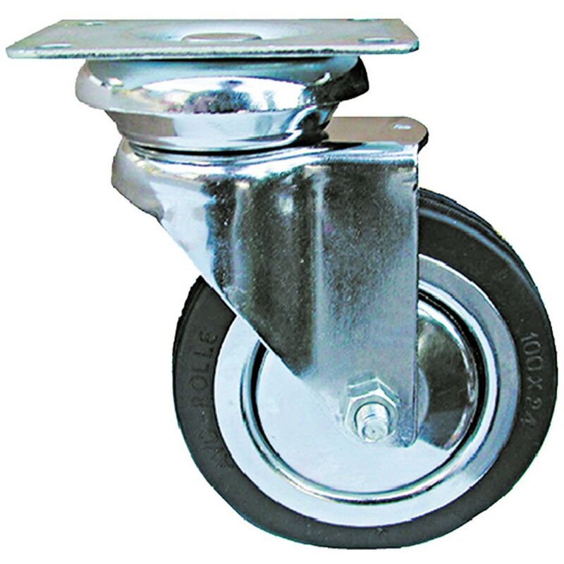 IN GOMMA NERA, CON PARAFILI E FLANGE IN ACCIAIO STAMPATO, ROTANTE SU CUSCINETTI A SFERA. PIASTRA GIREVOLE. ESECUZIONE: CROMATA.ø 60 PIASTRA MM 64 X 50