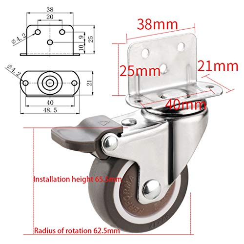 Ruote per Mobili Rotelle per Mobili Caster Wheels Ruote Girevoli con Freno Ruote per Mobile Robusto e Resistente con Piastra di Assemblaggio e Cuscinetti a Sfere (4 Rotelle con freno) (2inch)