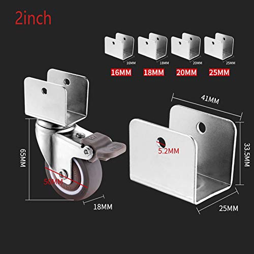 4 Ruote Per Mobili Con Staffa a Forma Di U,Ruota Girevole Per Mobili,2 Pollici/50mm Ruote Gomma,Carico 75 Kg,Con Freno,Silenzios,Utilizzate Per Scaffali,Supporti Per Fiori,Culle(18MM)