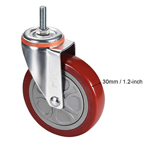 Ruote piroettanti girevoli in PU, ruote da 5 pollici, diametro M10 x 30 mm, asta filettata, capacità 308 lb, 4 pezzi