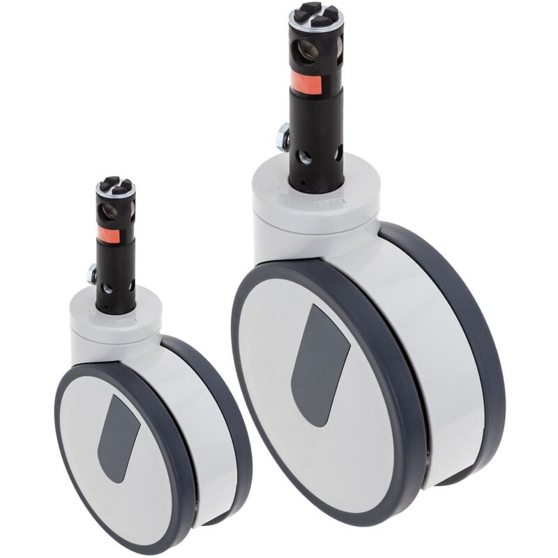 Ruota girevole di alta qualità e facile da usare, realizzata per mobili nelle strutture sanitarie con la capacità di sopportare carichi pesanti. La ruota ha una capacità di rotazione di 360°, che consente grande funzionalità e facilità d'uso in attività che comportano un movimento costante. Caratteristiche del prodotto: FUNZIONALITÀ: Le ruote consentono cambi di direzione con grande scorrevolezza e semplicità per facilitare il trasporto dei mobili ospedalieri. IDEALE: Per ospedali e centri sanitari per il trasporto da barelle mediche, armadi modulari, lettini da visita e tutti i tipi di mobili ospedalieri multifunzionali. CARATTERISTICHE: Hanno un fissaggio a stelo cavo con un'unica perforazione. CARICO SUPPORTATO: La ruota supporta un carico di 150 kg. Ognuna consente una rotazione fluida dei mobili con sicurezza garantita. DESIGN: Confezione da 2 ruote grigie e bianche per mobili medici come barelle, mobili multifunzione, letti ausiliari, ecc. MATERIALI: Le ruote sono realizzate in
