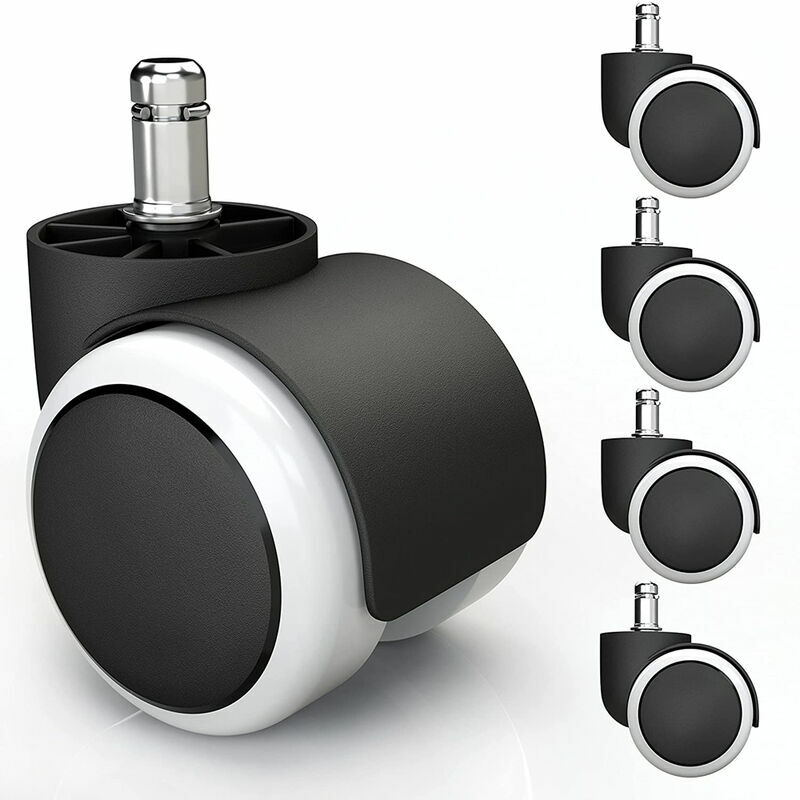 Confezione da 5 rotelle girevoli per sedia da ufficio bianche. -Il diametro di ciascuna ruota è di 50 mm e la dimensione della vite è di 11×22 mm. - Questa ruota è realizzata in PU di alta qualità e nylon, che è resistente all'usura e silenzioso. -Resiste a carichi fino a 125 kg ed è robusto e durevole. -Le nostre ruote di ricambio per sedie non macchiano né danneggiano la tua pavimenti. -Scivolano in modo sicuro su pavimenti in legno, piastrelle e marmo.