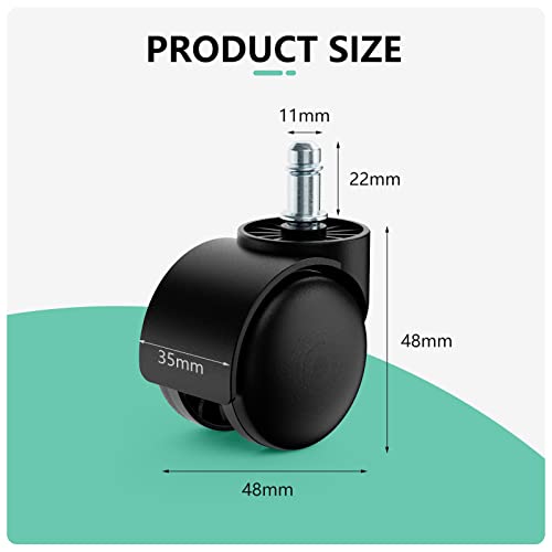 Ruote Sedia Ufficio Universale, 11 mm x 22 mm, 5 Rotelle da Ufficio 50 mm - MAX 160 KG, Scivolata Super Fluida & Silenziosa, Rotelle Sedia Ufficio Set (Nero)