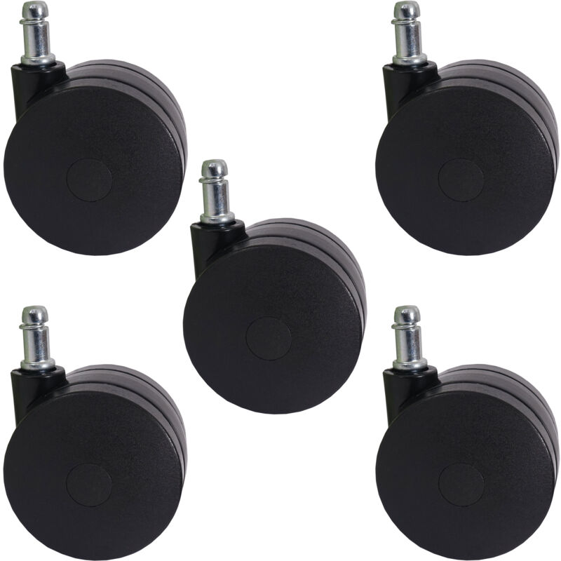 Set 5x ruote per sedie girevoli modello T533 70mm Volete sistemare la vostra sedia da ufficio senza acquistarne una nuova? Con questo set di ruote rimetterete in sesto la vostra vecchia sedia! piedi PIN 11mm di diametrodiametro ruota 7cm molto resistenti all'usura adatto per pavimenti duri (marmo, piastrelle, parquet e laminati) adatto per essere applicato a poltrone da ufficio facile da montare scorrimento sul pavimento silenzioso materiale: plastica e metallo dimensioni (ca.): altezza: 100mm diametro pin: 11mm diametro ruota: 70mm larghezza: 50mm profondità: 70mm carico massimo: 150kg peso complessivo 5 ruote: 0,9kg ordinabili anche altri modelli di ruote per poltrone ufficio (vedi altre offerte, salvo disponibilità).