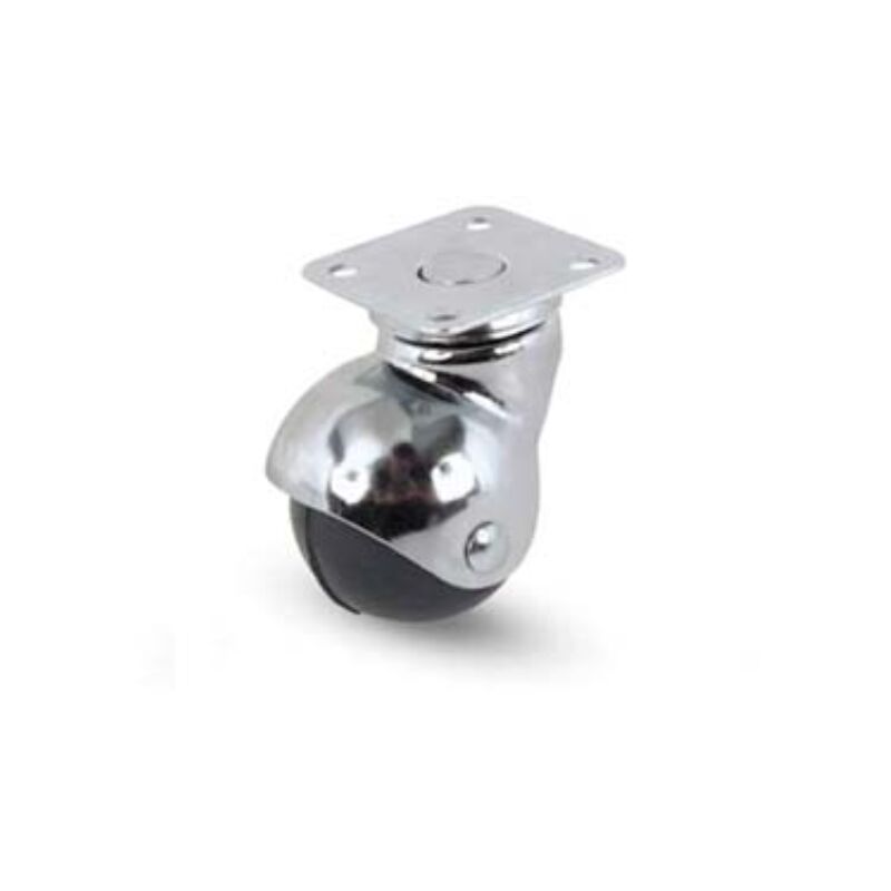 Ø mm.30 piastra mm.40x40 mm.52h. 20dan supporto a cuffia sferica rollstar in acciaio cromato stampato rotante su doppia corona di sfere - ruota in materiale termoplastico nero - l'impiego è consigliato per mobili per ufficio, espositori, arredamenti metallici, carrelli, poltrone, etc. eccellente scorrevolezza su tappeti Categoria merceologica: Ruote - Ferramenta - Ruote per mobili