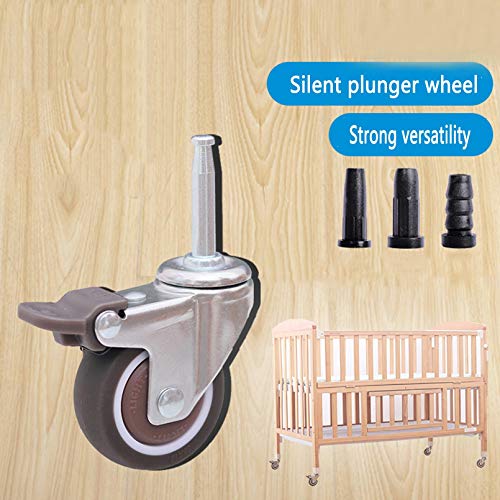 4 Ruote Silenziose per Culla,Ruote Girevoli in Gomma con Freno,Rotelle per Mobili 1,5/2 Pollici,Accessori per Lettino da Sedia,con Pistone M7/M7.4/M8,con Manicotto,Carico 80Kg(M7.450mm)