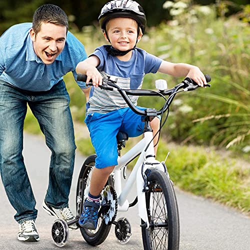 【Senso di sicurezza】 La sicurezza dei bambini è la preoccupazione principale di tutti i genitori. Oltre alle pratiche rotelle da allenamento, la confezione viene fornita con nastro riflettente. Queste ruote con luci lampeggianti inserite lampeggiano durante la guida. Possa ogni momento in bicicletta essere felice e sicuro.