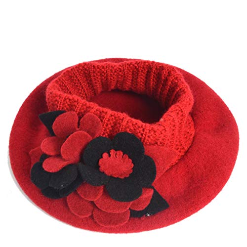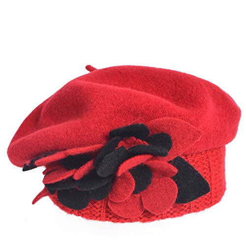 Ruphedy Donna Berretto Francese Lana Angola Berretto in Maglia Baschi e Berretti Invernale Cappello (Hy023-Rosso)