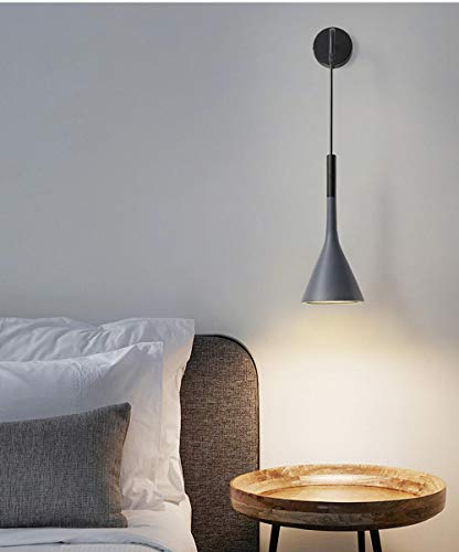 Rururug Lampade a sospensione da parete nordiche da comodino E27 Lampada da parete a LED per camera da letto per soggiorno Apparecchio per luci da cucina dell'hotel Nero bianco grigio-Grigio_Colore