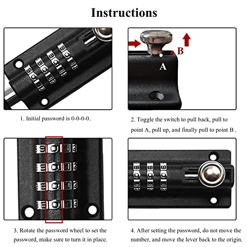 Rusoz Chiavistello Per Porta Con Combinazione 4 Digitali,Catenaccio Porta Nero Lega di Zinco Serratura Porta Blindata Interna Esterna Lunghezza 120mm Con Viti per Antifurto e Rimovibili