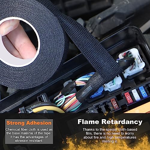 Rusoz Nastro Isolante In Tessuto Nero,Nastro Elettricista Alte Temperature Nastro per Cablaggio Automobilistico Resistente All'abrasione 20mx19mm per Evitare Grovigli Di Cavi E Ridurre Il Rumore