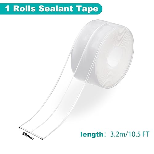 Rusoz Nastro Sigillante Doccia Trasparente,Nastro Adesivo Impermeabile Battiscopa Morbido Antiolio E Antimuffa 3.8cmx3.2m con aiuto adesivo Per Cucine, Bagni E Toilette