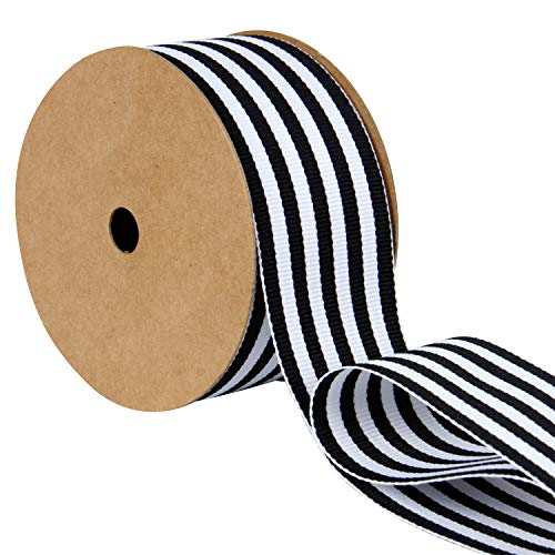 RUSPEPA Nastro In Gros-Grain A Righe Bianche E Nere - Nastro Da Regalo Per Decorazioni Nuziali, Feste Di Compleanno, 38 mm X 9,14 m/Bobina