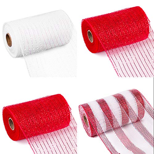 RUSPEPA Nastro in Rete Metallica Decorativa - 15 cm x 9,14 m Ogni Rotolo - Rotoli di Lamina Metallica Rossa e Bianca per ghirlande, festoni e Decorazioni - Confezione da 4