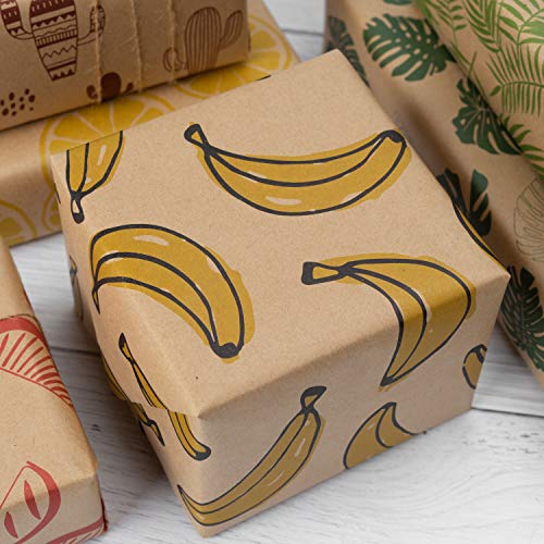 RUSPEPA oglio Di Carta Da Regalo Kraft - Anguria/Banana/Limone/Cactus/Monstera/Design A Palma Per Occasioni Speciali - 6 Fogli Confezionati Come 1 Rotolo - 44,5 X 76 cm Per Foglio