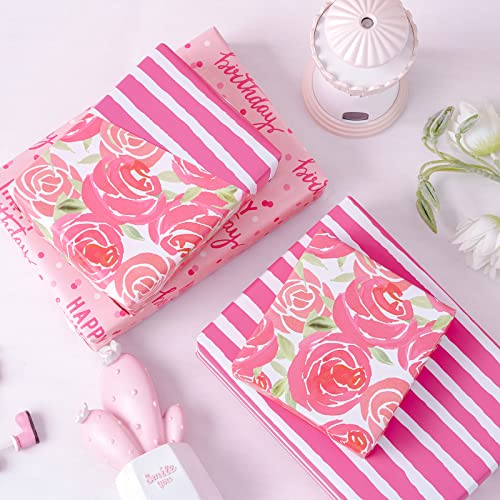 RUSPEPA Rotoli Di Carta Da Regalo Kraft Per La Festa Della Mamma, Matrimonio, Baby Shower, Compleanno - 43 Cm X 3 M Per Rotolo, Totale Di 3 Rotoli, Rosa Rosa