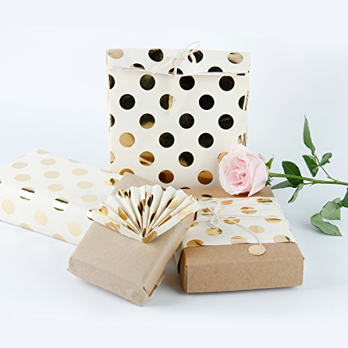 RUSPEPA Rotolo Di Carta Da Regalo - Disegno Di Punti A Lamina D'Oro Per Matrimoni, Compleanni, Docce, Complimenti E Regali Di Festa - 76 cm X 10 m Per Rotolo