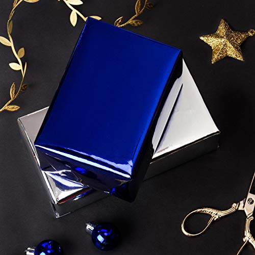 ALTA QUALITÀ: carta da imballaggio piuttosto spessa, lamina blu royal lucida con brillantezza super metallica