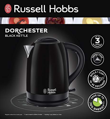 Russell Hobbs 20093 - Bollitore senza fili Dorchester, 1,7 l, 3000 W, colore: Nero