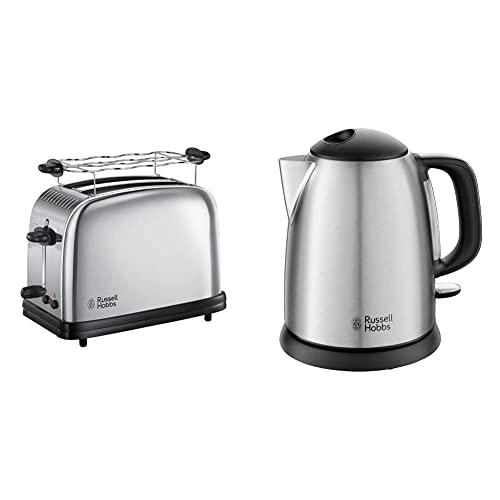 Russell Hobbs 23310 56 Tostapane a 2 Fessure Senza Pinze in Acciaio Inox, 1200 W, Grigio/Nero & 24991 70 Bollitore Compatto Adventure, Capacita 1L, Filtro Anticalcare, 2400W, Acciaio Satinato