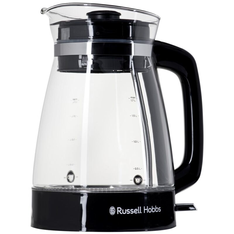 Bollitore in vetro con dettagli in plastica e acciaio inox. Caraffa in Vetro da 1.5L con beccuccio Perfect Pour antigoccia. Illuminazione interna Blu durante l'utilizzo. Impugnatura ergonomica. Base Girevole a 360° con avvolgicavo integrato.