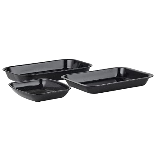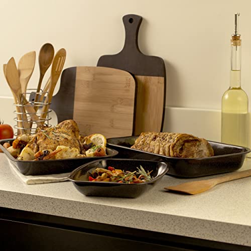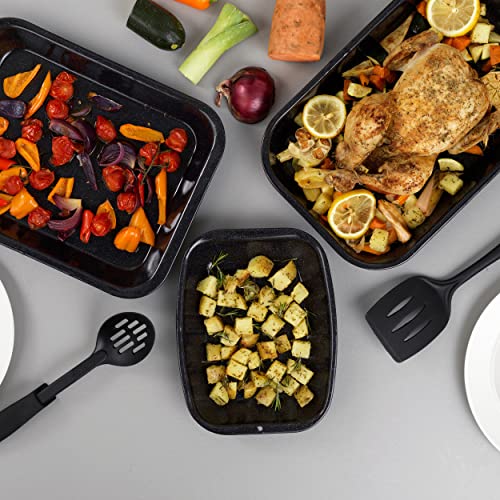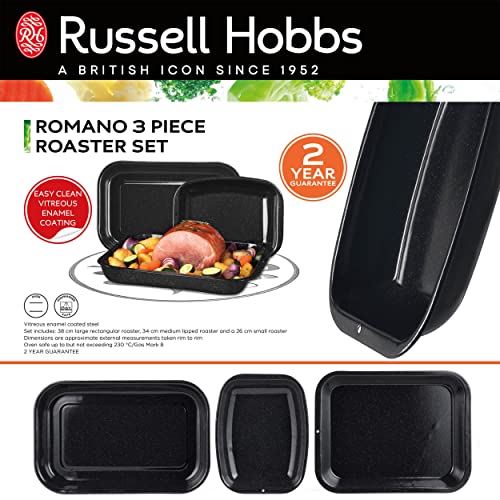 Russell Hobbs CW20701AR Romano Set di vassoio per tostatura in smalto vetro da 3 pezzi, vassoi per tostatura facili da pulire, panoramica quadrata, acciaio al carbonio, nero, 36 cm, 26 cm, 26 cm
