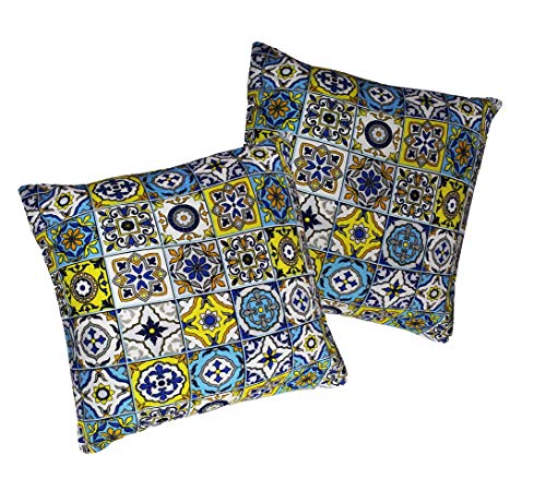 Russo Tessuti Coppia federe Cuscini DIVANI 50x50 cm Cotone Capri VIETRI Giallo Blu Pillow Case