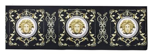 Russo Tessuti Tappeto Passatoia Corsia Cucina Bagno Antiscivolo Medusa Medea Nero Oro Barocco-50x240
