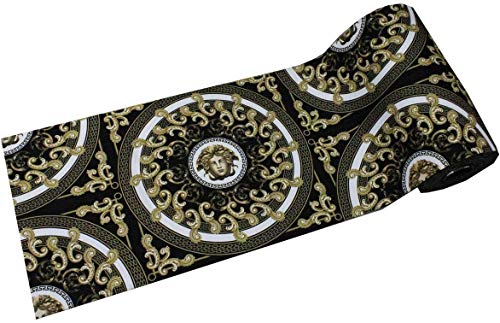 Russo Tessuti Tappeto Passatoia Corsia Cucina Bagno Antiscivolo Medusa Medea Nero Oro Barocco-50x140cm