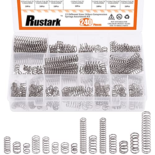 Rustark 240 molle a compressione piccole in acciaio inox, kit di assortimento di molle meccaniche 14 diverse misure 8 mm 9,5 mm OD, 10 mm 20 mm 50 mm L