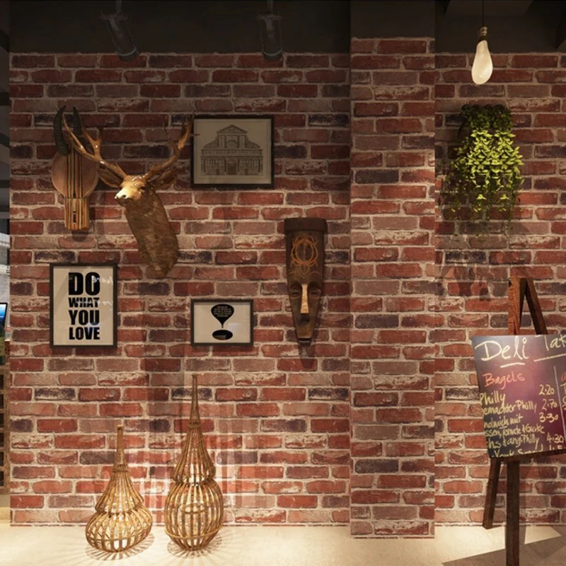 Rustic Vintage 3D Faux Bricks Wallpaper Roll Vinyl PVC Retro Industrial Loft Wall Paper Red Brown Gray Waterproof Washable store