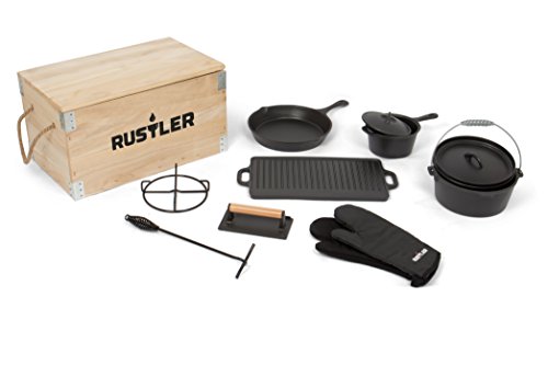 Rustler Set da Forno Olandese 9 Pezzi | Batteria Pentole in Ghisa Smaltata/Set da Barbecue per Cucina alla Brace o a Fuoco Lento, Brasare, Cuocere in Forno