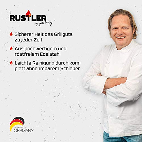 Rustler Spiedini in Acciaio Inossidabile, Set da 6 Spiedini da 44 cm di Forma Piatta, Robusti e Riutilizzabili