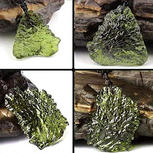 RUSTOO Collana di Cristallo moldavite, Pendente di Pietre Irregolari di Moldavite in Cristallo Naturale Gioielli di Meteorite in Pietra di energia fortunata per Uomo e Donna