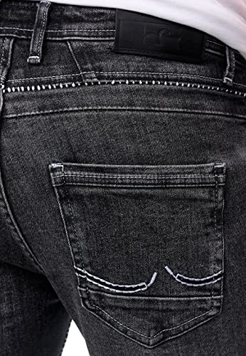 Rusty Neal Jeans da motociclista da uomo "Misato" DIE-Absolute Slim Fit Stretch Destroyed Biker design con chiusura a bottoni e cuciture a contrasto 241, Grigio scuro usato., 29W x 32L