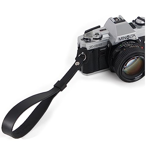 Ruth&Boaz Full Grain Leather Camera Strap, Camera Wrist Strap, Luxury Camera Strap (Black)