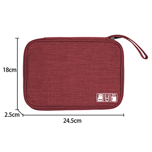 Ruyosn Organizer per cavi, borsa piatta, impermeabile, tasca per disco rigido, borsa elettronica, organizer per cavi, accessori elettronici, organizer per cavi, power bank, rosso