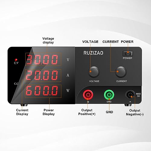 RUZIZAO Alimentatore da Banco 30V 20A 600W Alimentatore da Laboratorio Regolabile ad Alta Potenza Professionale DC con manopola encoder Display a LED a 4 Cifre alta Precisione e Uscita Stabile