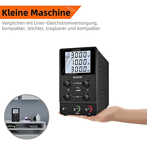 RUZIZAO Alimentatore da Laboratorio,DC Regolabile Stabilizzato (nero D3010)
