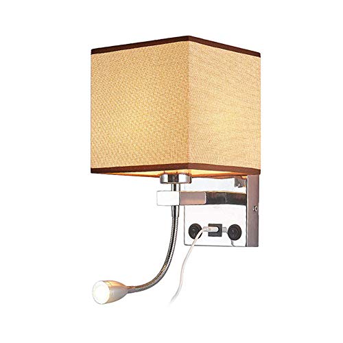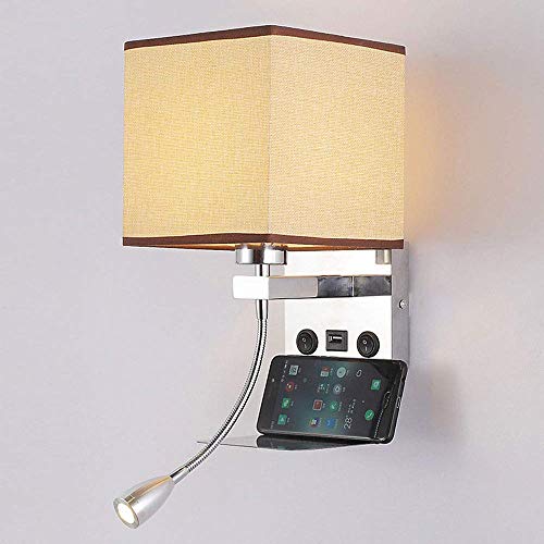 RUZMY 2 in 1LED Lampada A Muro,Regolabile Luce Di Lettura A LED Flessibile A Collo Di Cigno,Raddoppiare Interruttori Tessuto Paralume Applique Da Comodino Con USB,Metallo Illuminazioni Per Pareti