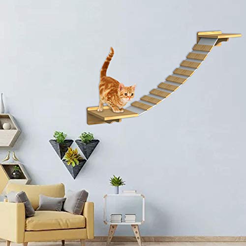 Materiale sicuro: la scaletta per gatti in legno massiccio ha una superficie liscia, è atossica e inodore e durevole. Non danneggia gli animali domestici durante il gioco.