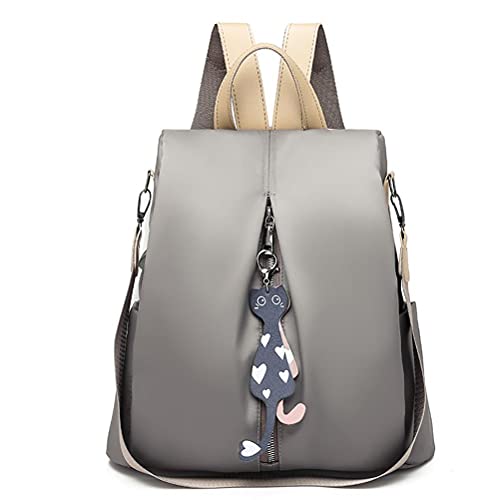 Rvtkak Zaino da donna in tessuto Oxford in nylon con ciondolo a forma di gatto, zaino da donna, borsa da viaggio di grande capacità, zaino impermeabile per le donne, Grigio chiaro, Taglia unica