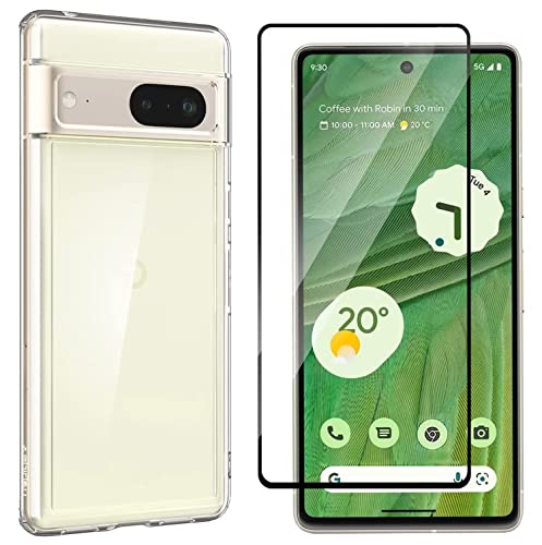 RWMM Cover per Google Pixel 7, Custodia in TPU Trasparente [Bumper con Angoli Rinforzati] 1 Pezzi Pellicola Vetro Temperato per Google Pixel 7 Cover-Trasparente