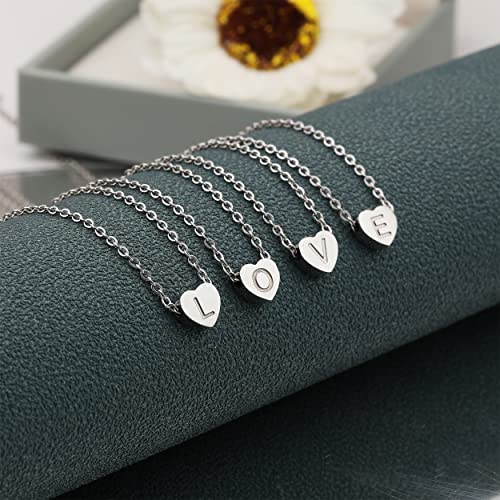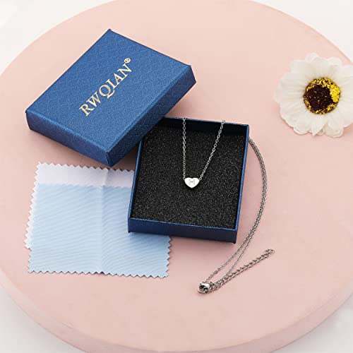 RWQIAN Collana iniziale da donna Collana con lettera Collana con ciondolo a forma di cuore Collana in acciaio inossidabile S Regalo iniziale Argento 38 + 5 cm (16 + 2 pollici)