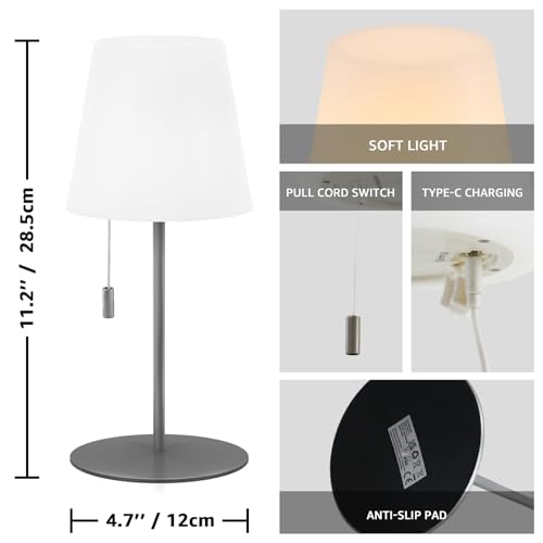 【Batteria Potente】: lampada da tavolo ricaricabile, con batteria ricaricabile di alta qualità, ricaricabile tramite cavo di tipo - C (cavo allegato), in sole 4 ore, godere di 8-10 ore di illuminazione prolungata (a seconda della modalità di utilizzo).