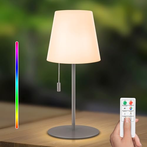 RWWR Lampada da Tavolo Esterni Senza Fili USB Ricaricabile 8 Colore Dimmerabile Con Remote Protezione IP44 per Soggiorno Giardino Terrazza Ristoranti (Argento)