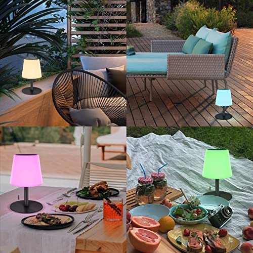 RWWR Lampada da Tavolo Solare Esterno 2 in 1 Ricarica 8 Colore Dimmerabile Protezione IP44 Lampada da Tavolo Senza Fili per Giardino Campeggio Terrazza (grigio)