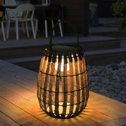 RWWR LED Solar Outdoor Rattan Lanterna da tavolo 8 colori Dimmerabile con telecomando 2in1 Ricarica Luce solare a sospensione IP44 Perfetta per il giardino all'aperto Prato Campeggio Terrazza (A)